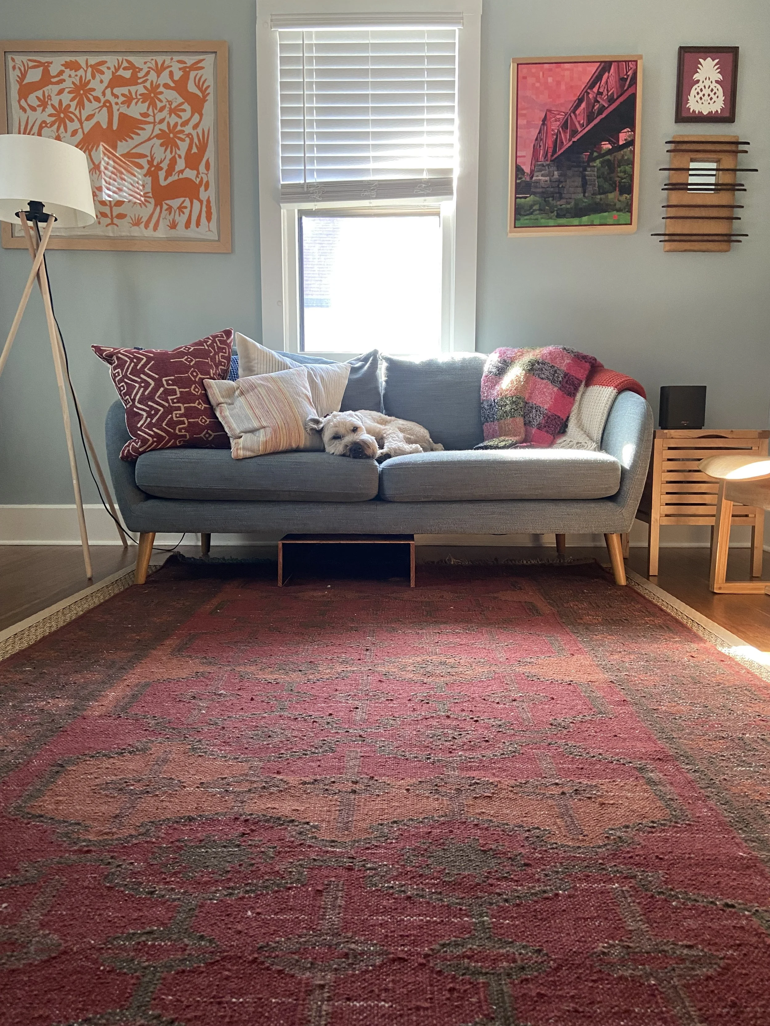 It is very, very tidy (but make it pretty). A calm, uncluttered space increases my peacefulness. But it's also rooted in the stories of my life, as well as the generations that came before me. Art, decor, - and even furniture sometimes - is collected from our travels, our family, and my artist friends.